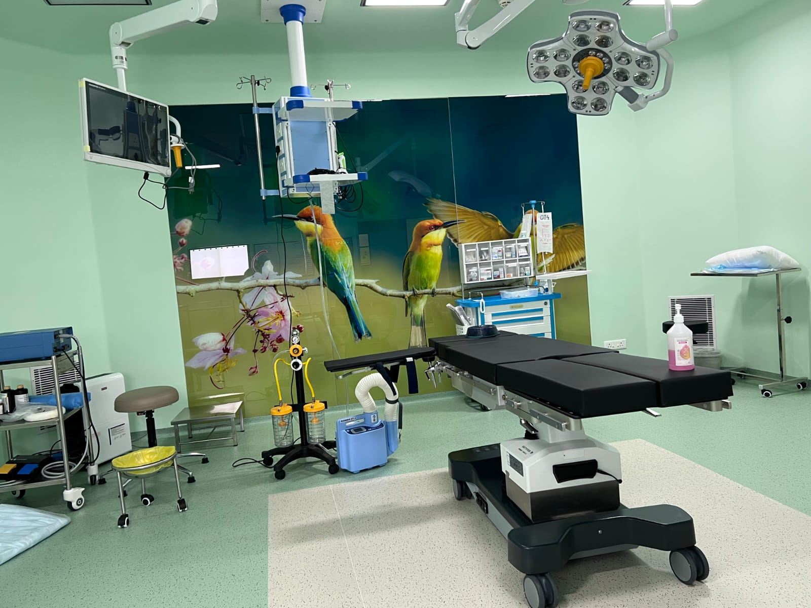 A continues flow of highly filtered “Bacteria Free” air is recalculated using Air handling unit under positive pressure into the operating area by ceiling suspended laminar air flow.